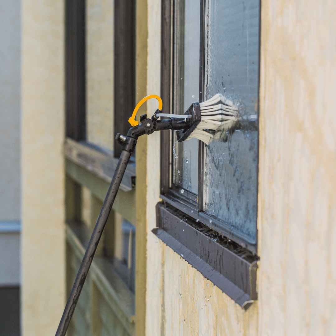 אנו מבצעים ניקיון חלונות בגובה ללא צורך בסנפלינג בעזרת טכנולוגיית אוסמוזה הפוכה, אשר מנקה את החלונות ללא השארת סימנים.
